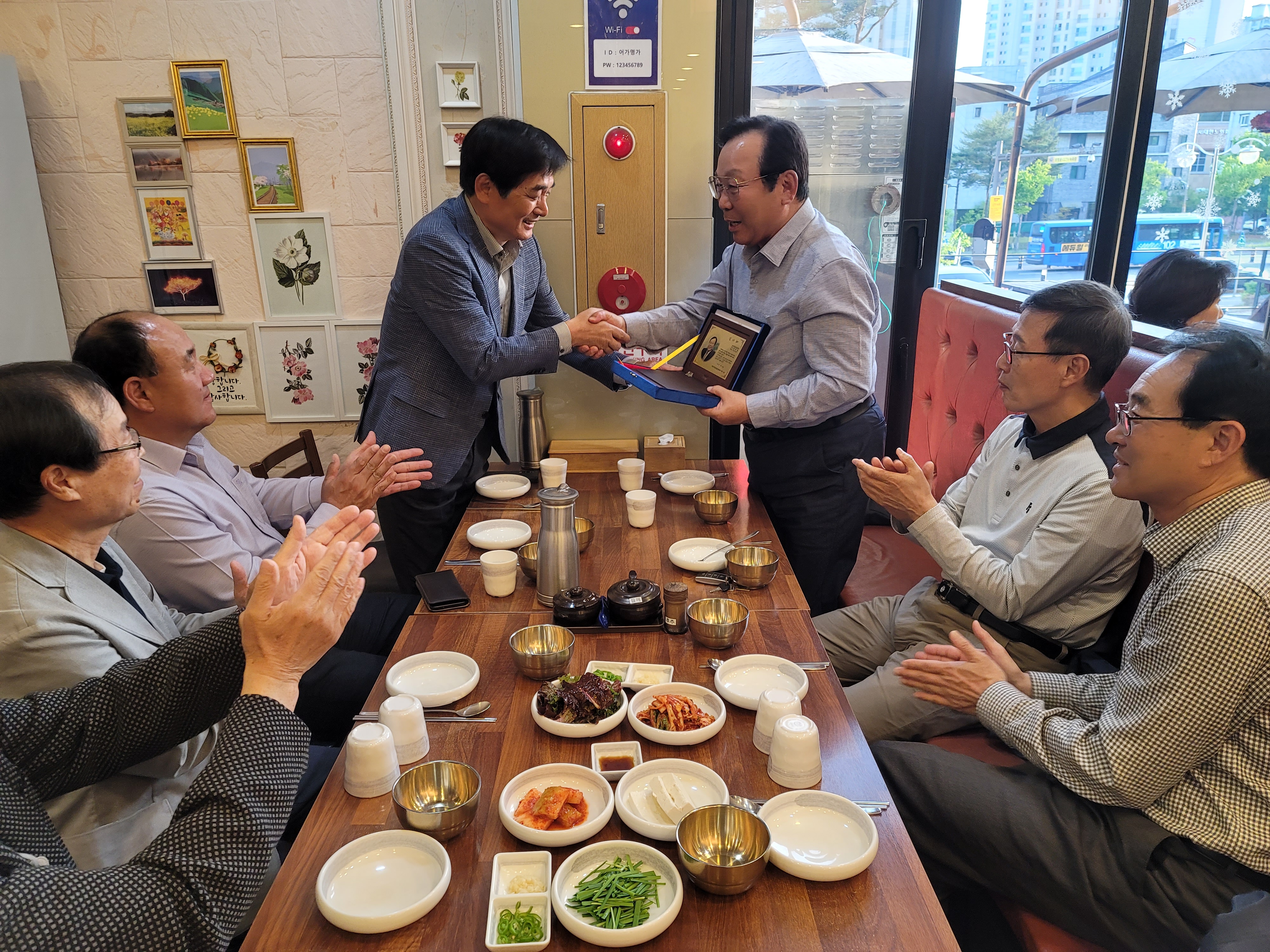 지금까지 회장으로 힘써오신 박희원 회장님께 감사패를 전달하는 시간을 보냈습니다.