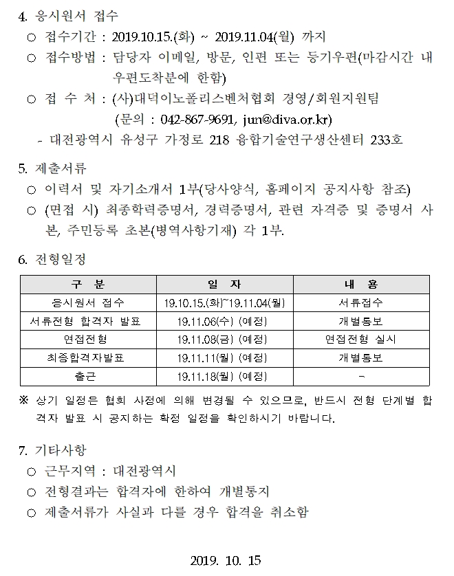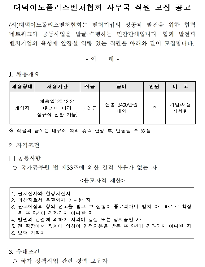대덕이노폴리스벤처협회 사무국 직원 모집 공고