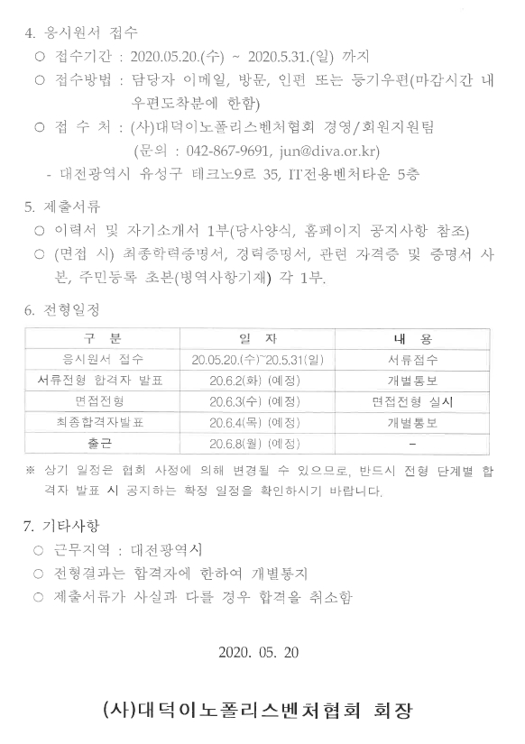 대덕이노폴리스벤처협회 사업직 직원 모집 공고