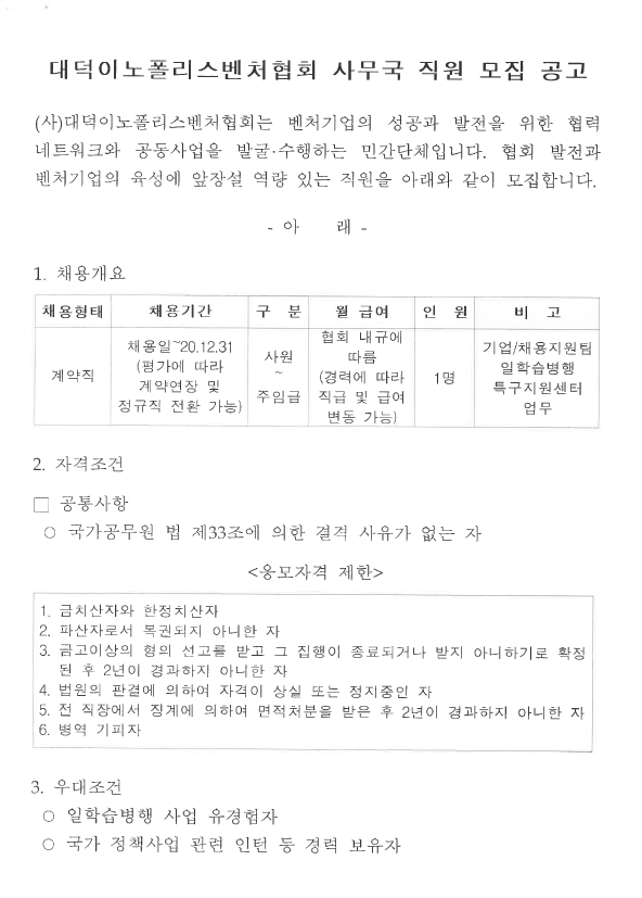 대덕이노폴리스벤처협회 사무국 직원 모집 공고