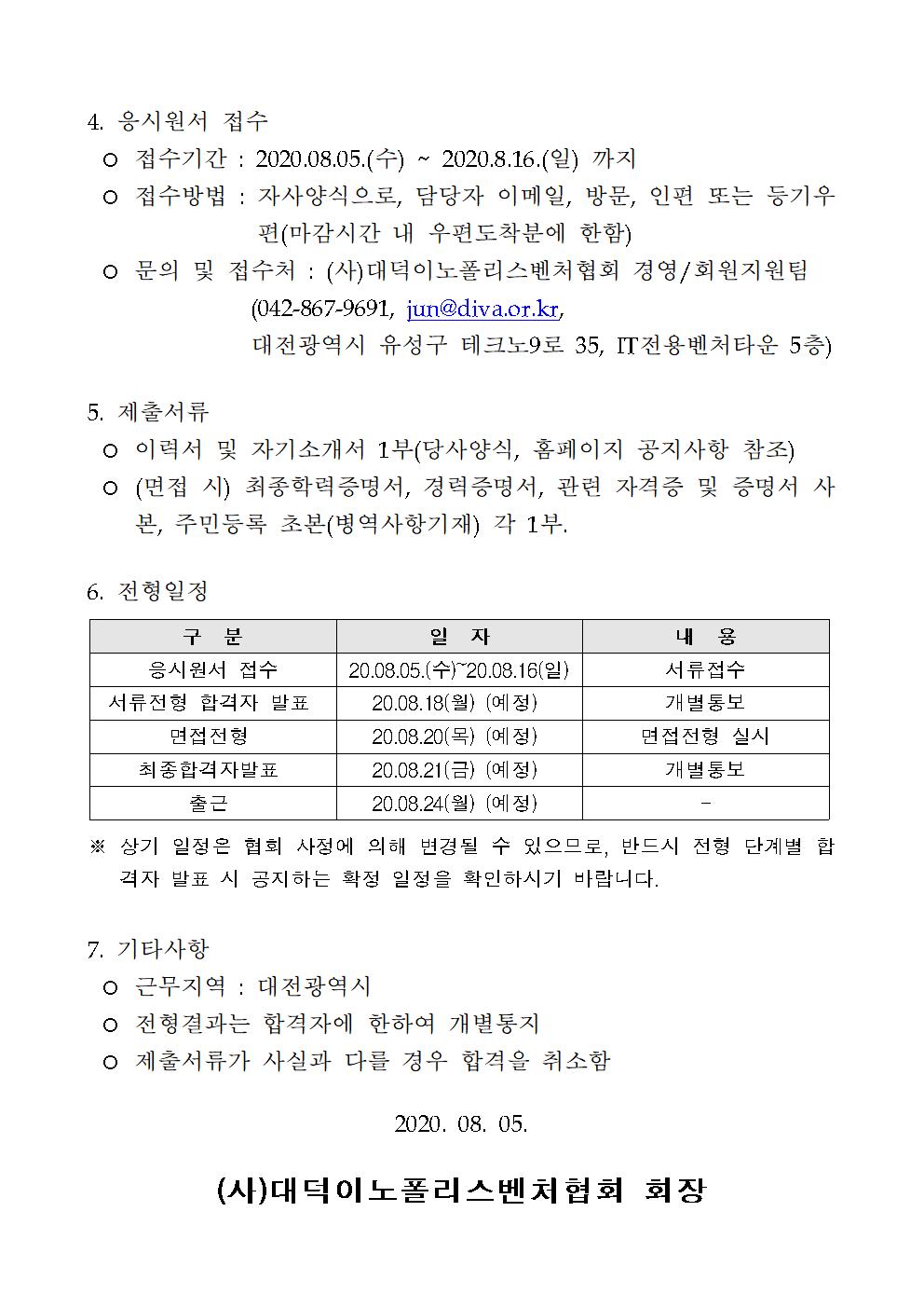 대덕이노폴리스벤처협회 사업직 직원 모집 공고