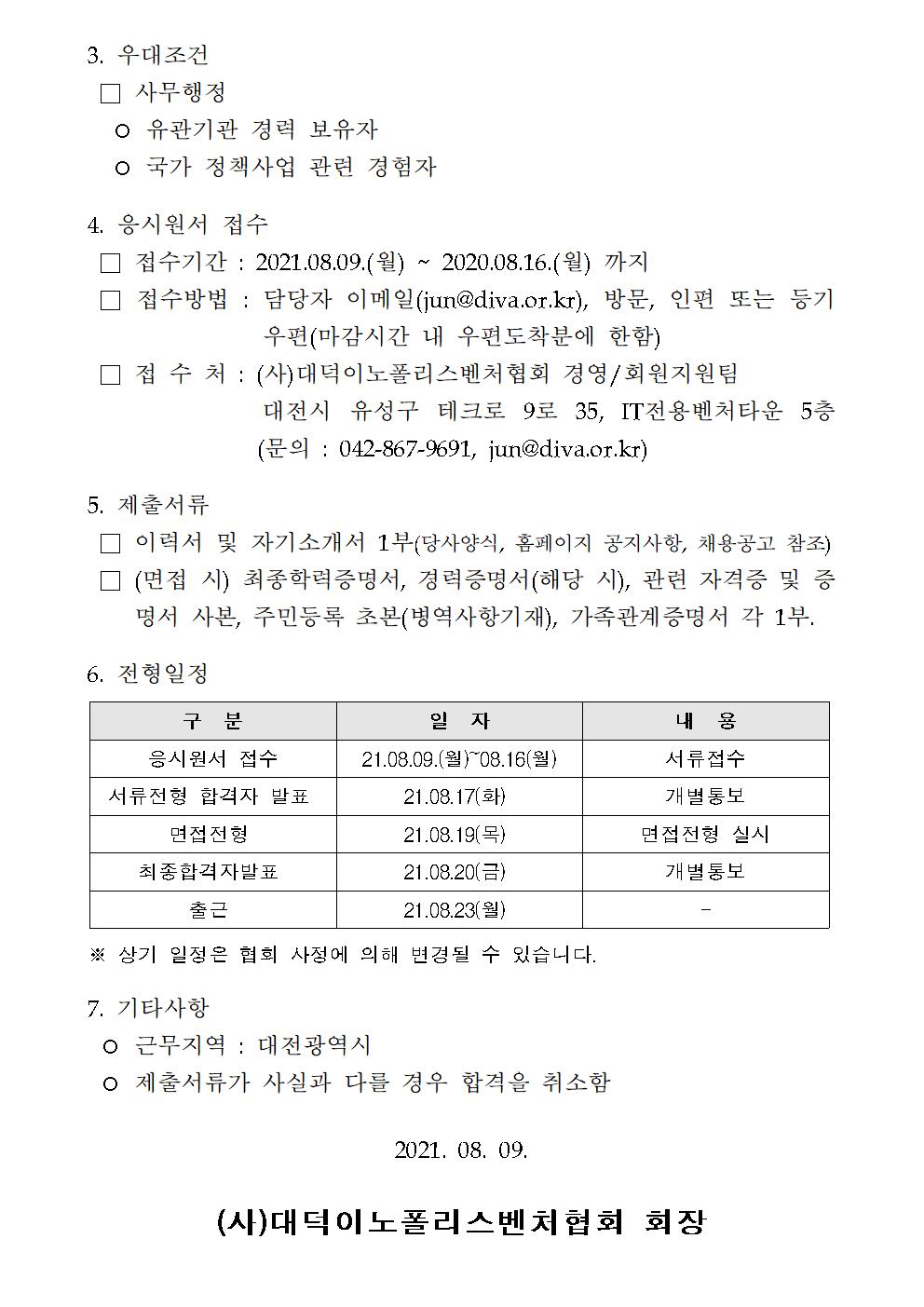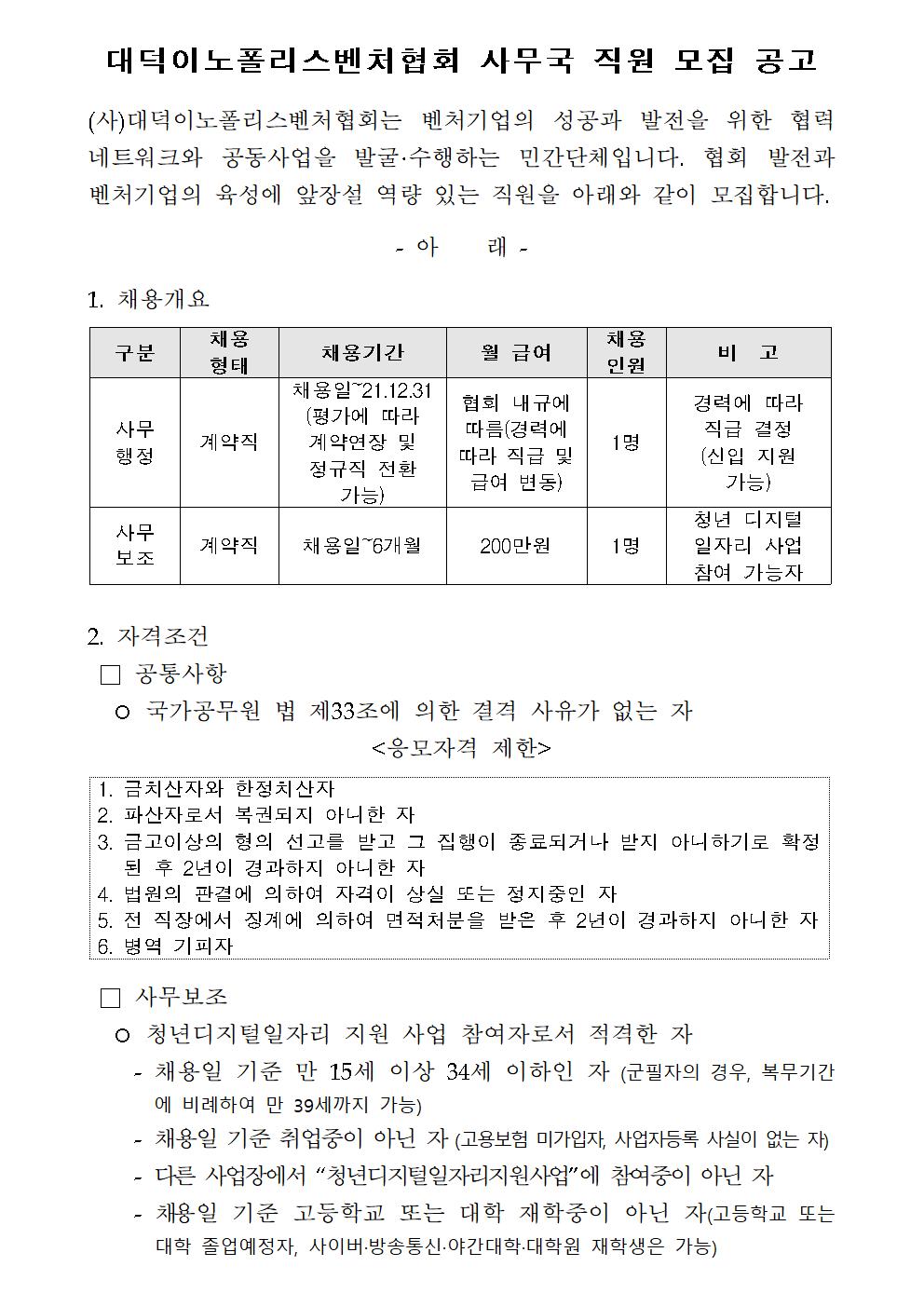 대덕이노폴리스벤처협회 사무국 직원 및 사무보조 모집 공고