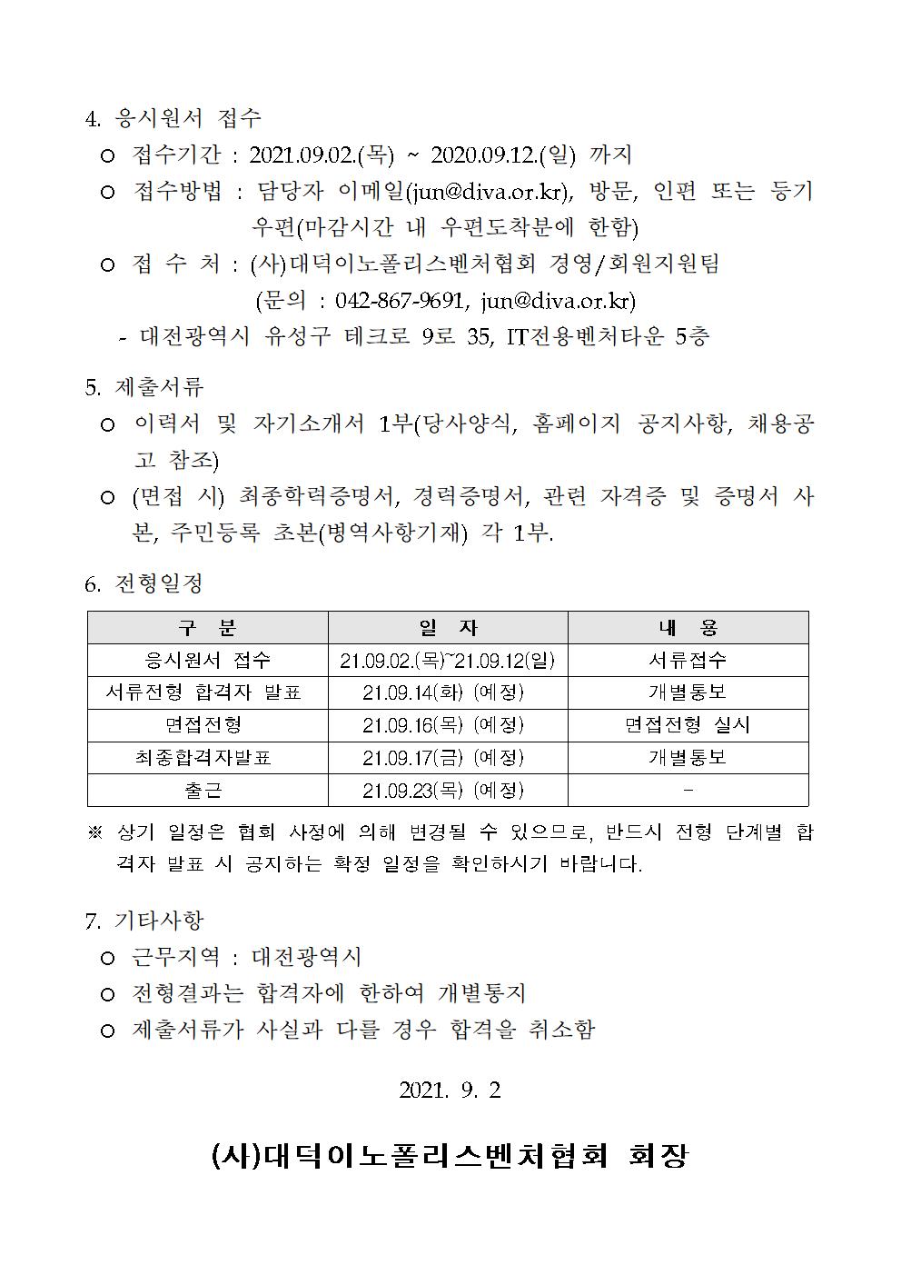 대덕이노폴리스벤처협회 사무국 직원 및 사무보조 모집 공고