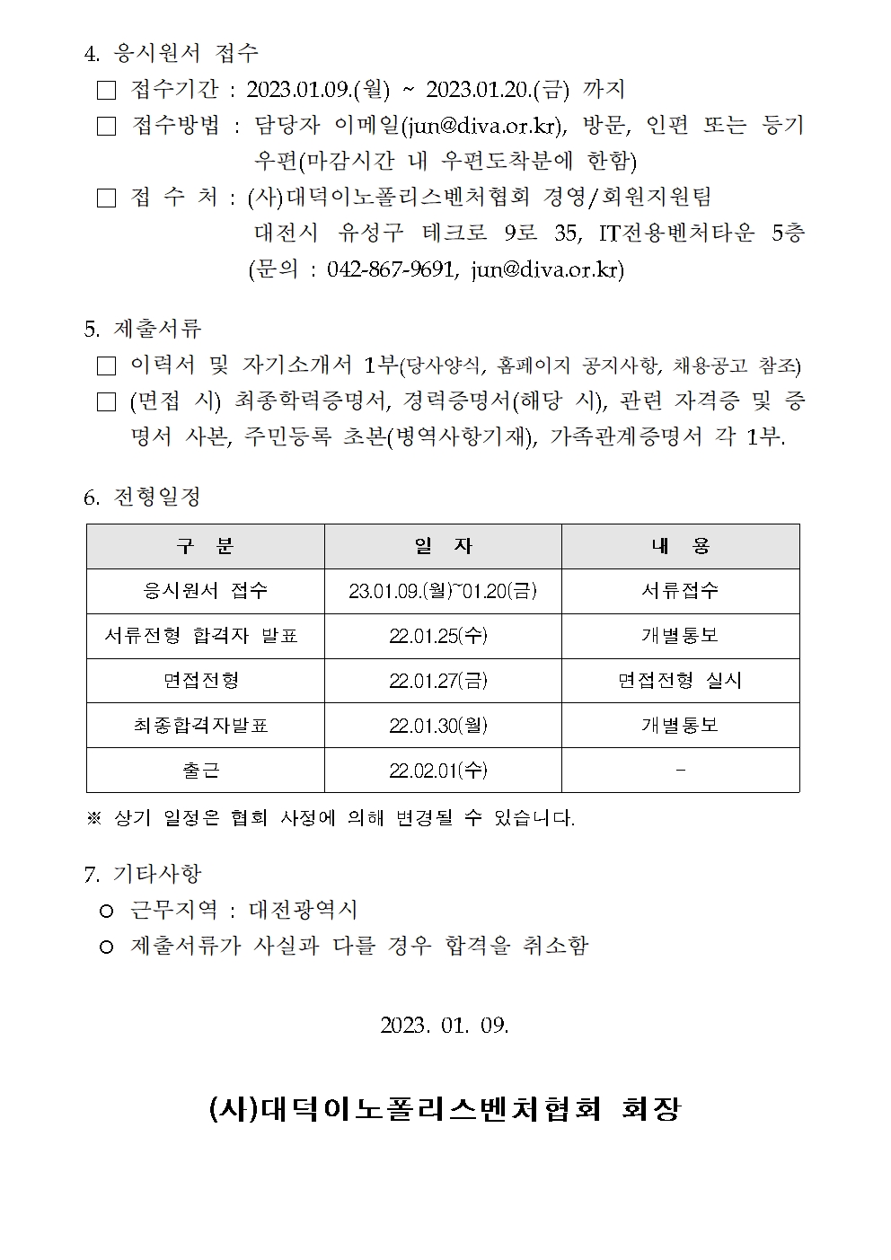 대덕이노폴리스벤처협회 사무국 사업계약직 직원 모집 공고