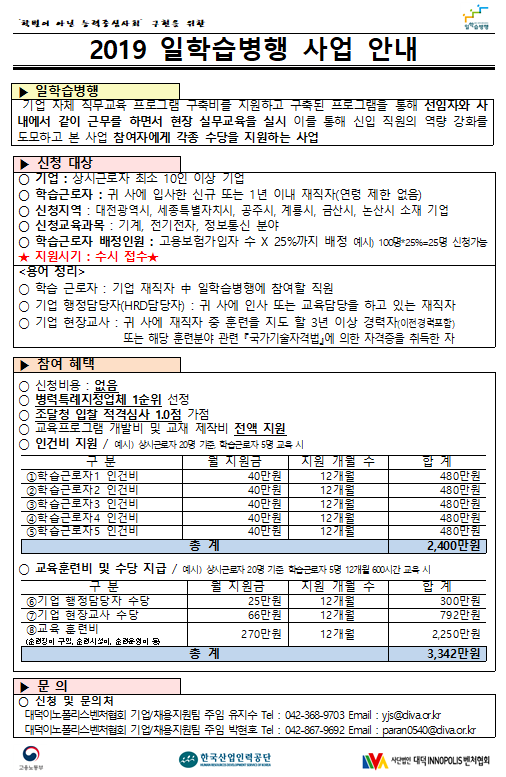 2019년 대덕특구 국방벤처 방산원가 전문인력 양성과정 참여자 모집 공고(수정)