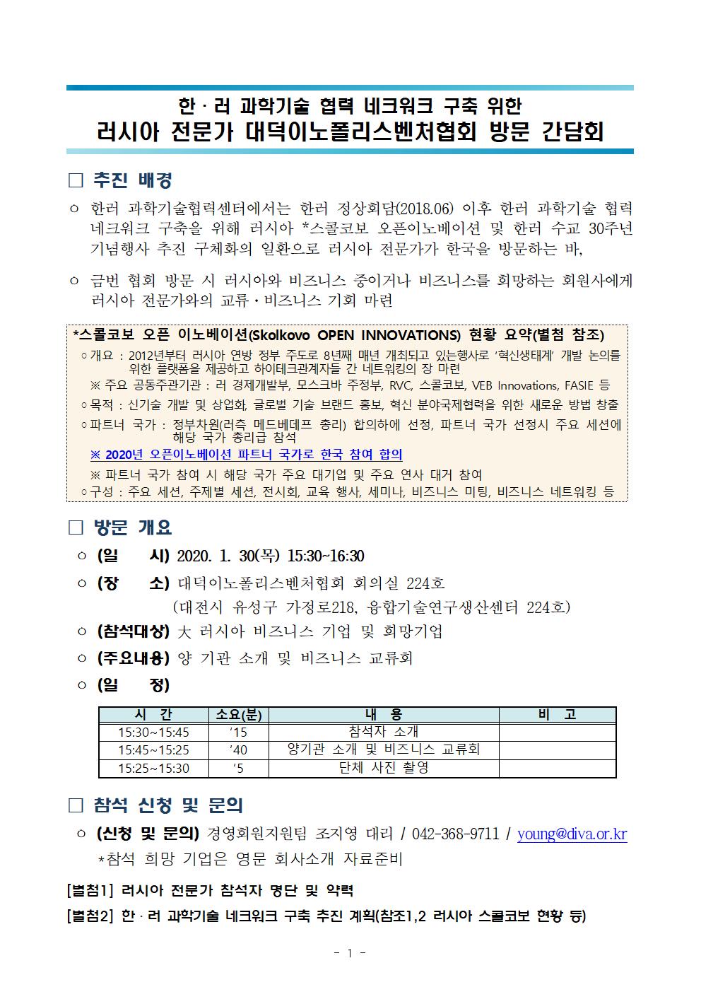 [DIVA] 러시아 전문가 대덕이노폴리스벤처협회 방문 간담회 안내