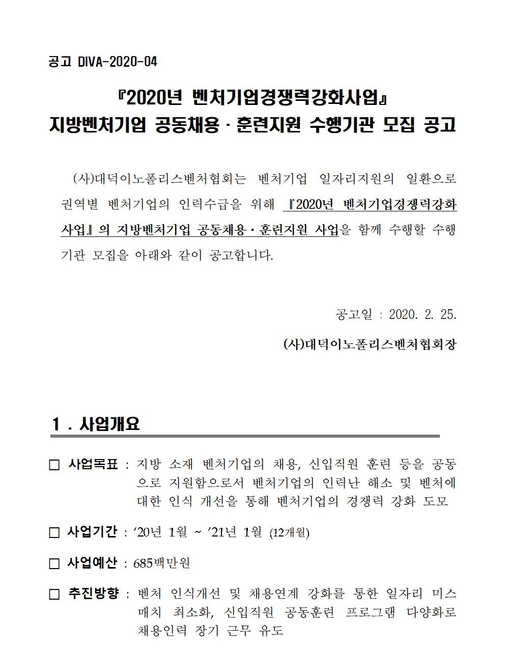 [공고] 2020년 지방벤처기업 신입직원 공동훈련 위탁용역 입찰공고