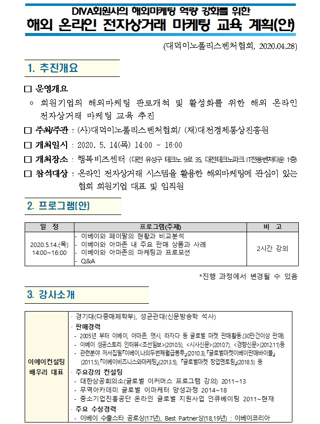 20200428_DIVA회원사를_위한_해외_온라인_전자상거래_마케팅_교육_계획(안).hwp