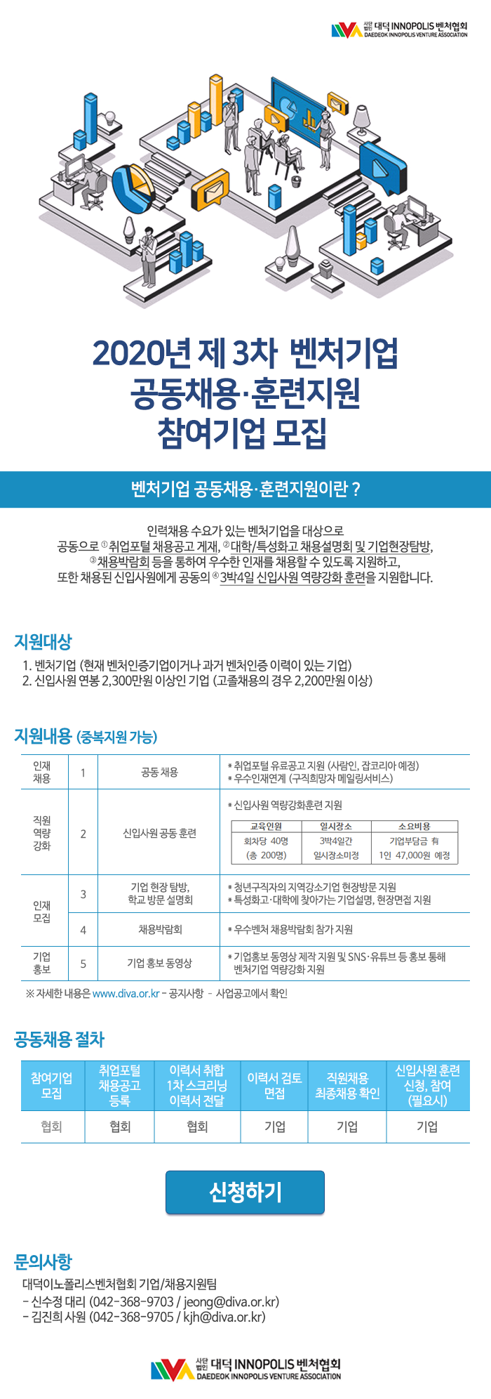[기업모집] 2020년 제 3차 벤처기업 공동채용훈련지원 참여기업 모집
