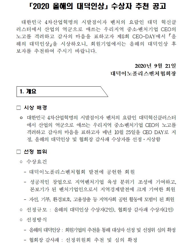 [올해의 대덕인] 2020 올해의 대덕인상 수상자 추천안내