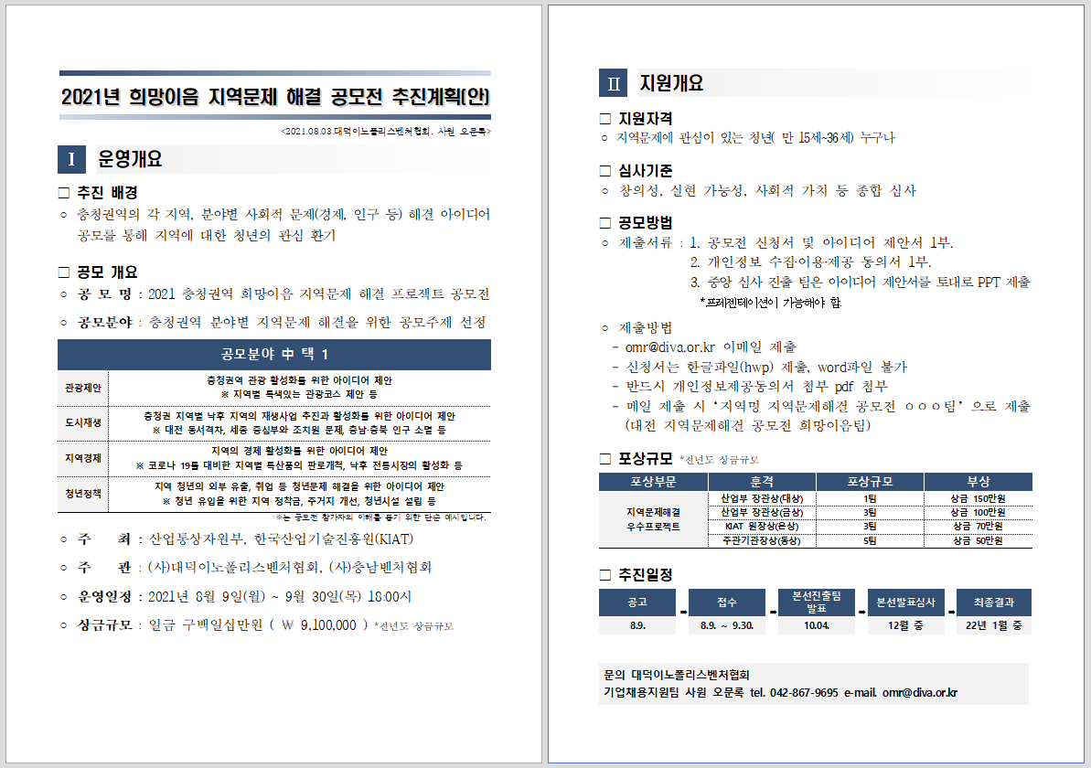[공고] 희망이음 프로젝트 2021년 충청권역 지역문제 해결 공모전 참여 모집 공고