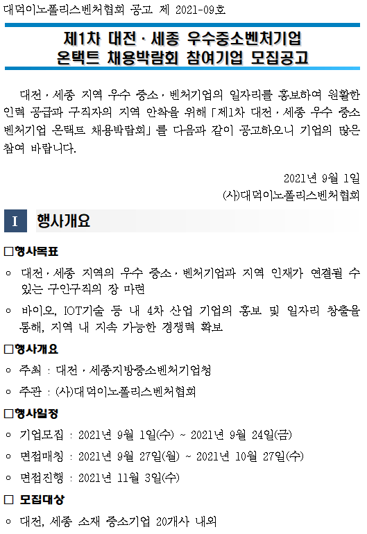대전세종 우수 중소벤처기업 온택트 채용박람회