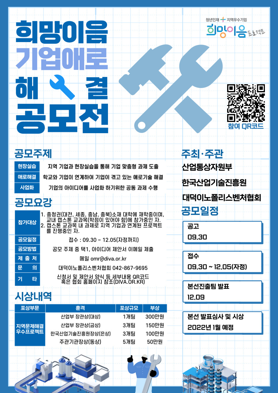 [공고] 희망이음 프로젝트 2021년 충청권역 기업애로 해결 공모전 참여 모집 공고
