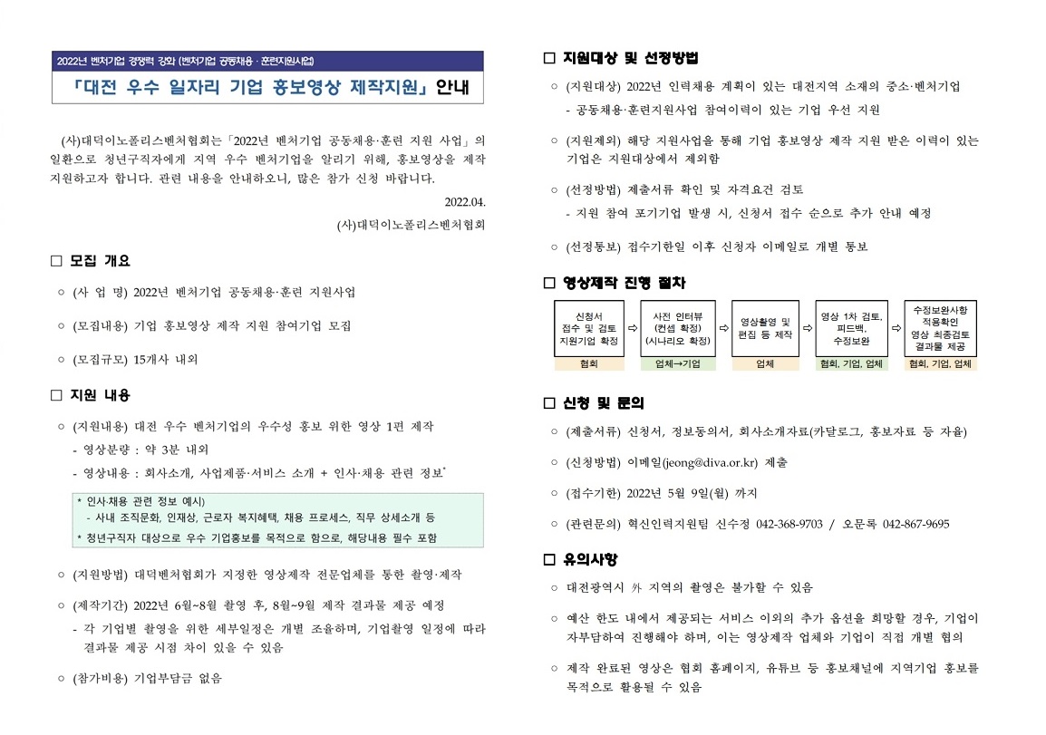 [참여기업모집] 2022년 대전 우수일자리 기업 홍보영상 제작지원 안내