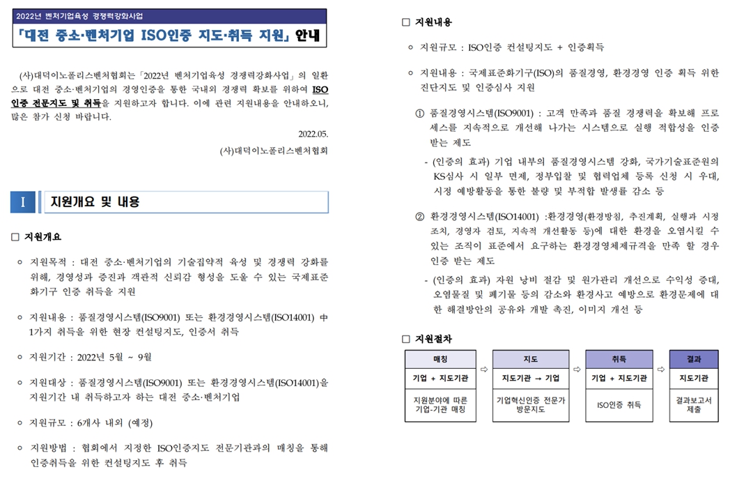[참여기업모집] 2022년 대전 중소벤처기업 ISO인증 지도 및 취득 지원 안내