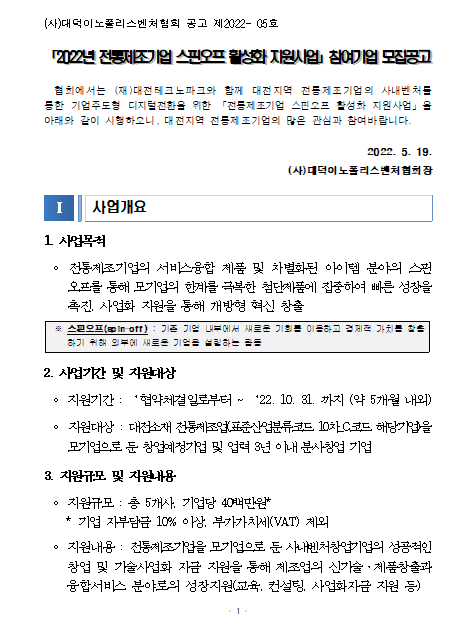 2022년_전통제조기업_스핀오프_활성화_지원사업_참여기업_모집공고문.hwp
