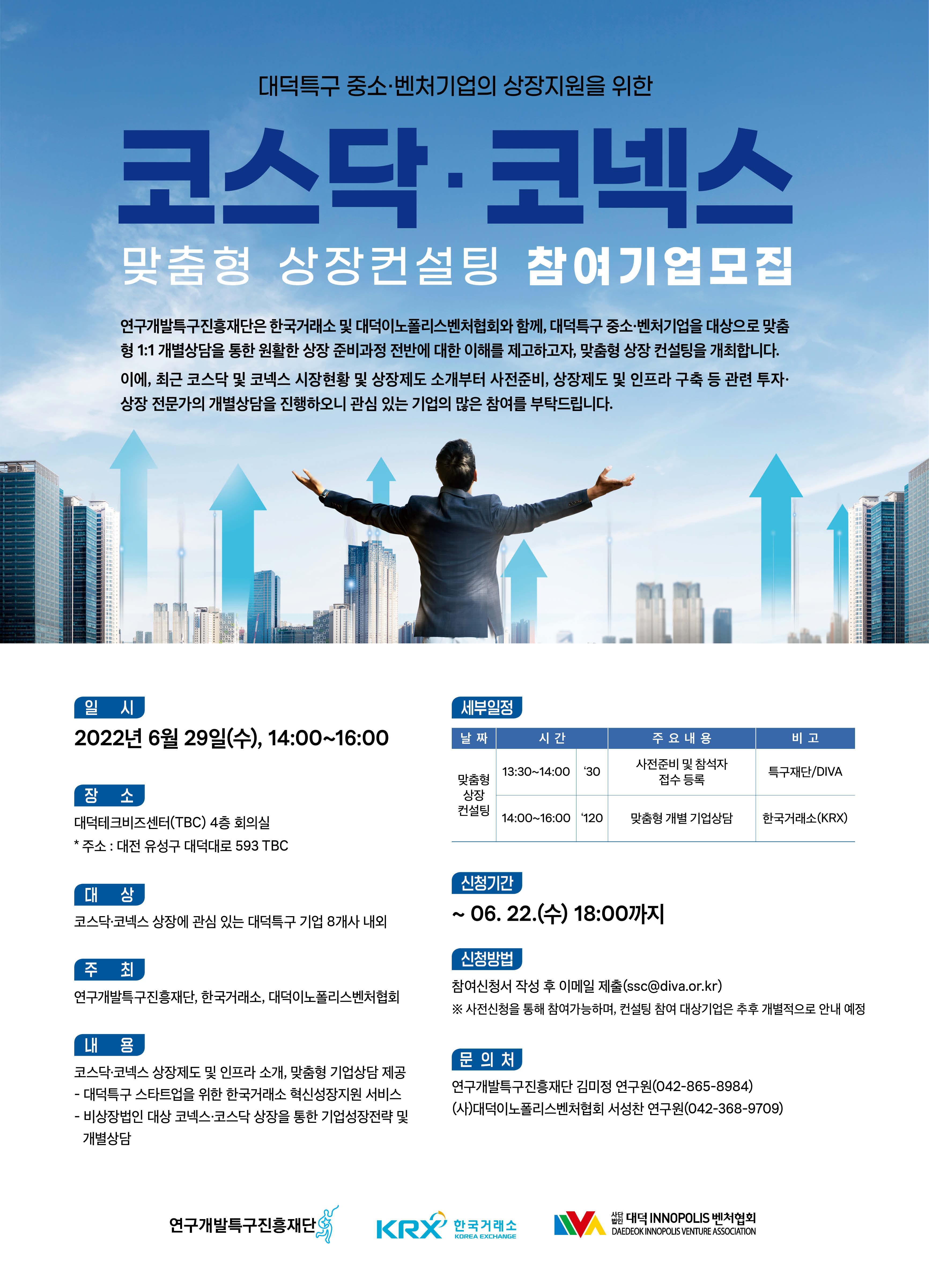 [기업모집] 대덕특구 코스닥 코넥스 맞춤형 상장컨설팅 참여 기업 모집