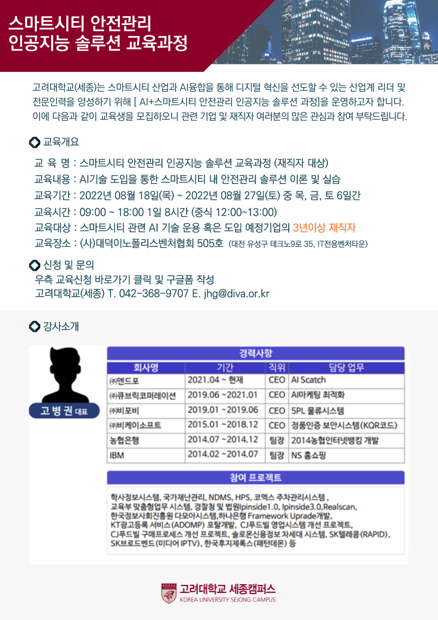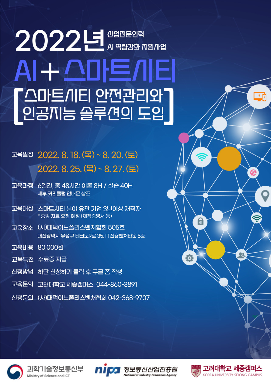 [참가자 모집] 2022 AI+스마트시티 융합 역량강화 재직자 교육 중간관리자 과정 교육생 모집
