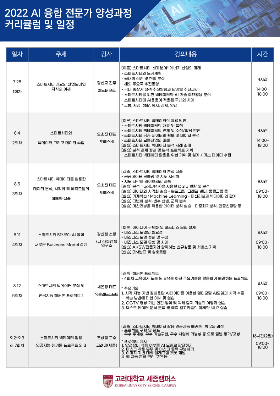 [참가자 모집] 2022 AI+스마트시티 융합 역량강화 재직자 교육 중간관리자 과정 교육생 모집