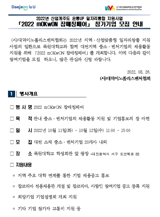 [참여기업모집] 2022 목원대학교 채용박람회 참가 안내
