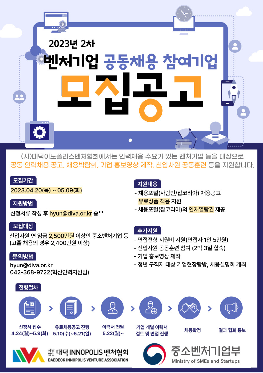 [참여기업모집] 2023년 제2차 벤처기업 공동채용 지원사업 참여기업 모집
