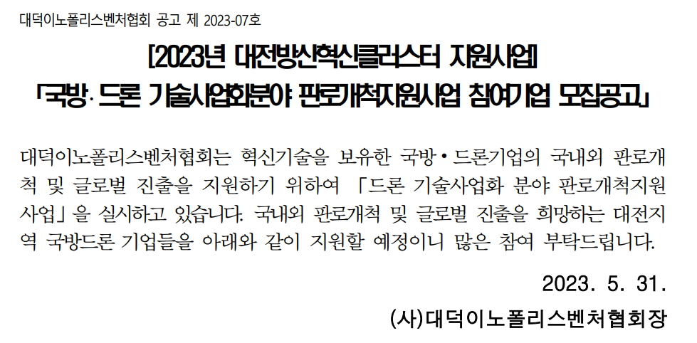 [참여기업 모집공고]국방드론 기술사업화분야 판로개척지원사업 참여기업 모집공고