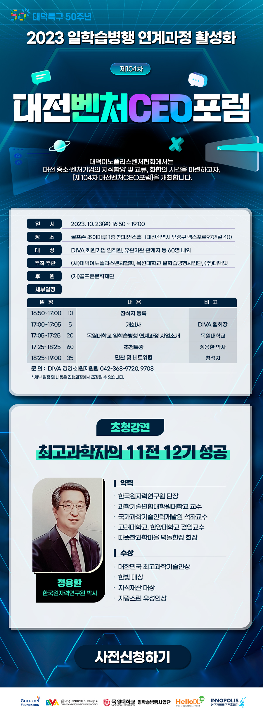 [특강/교류] 제104차 대전벤처CEO포럼 참석 안내