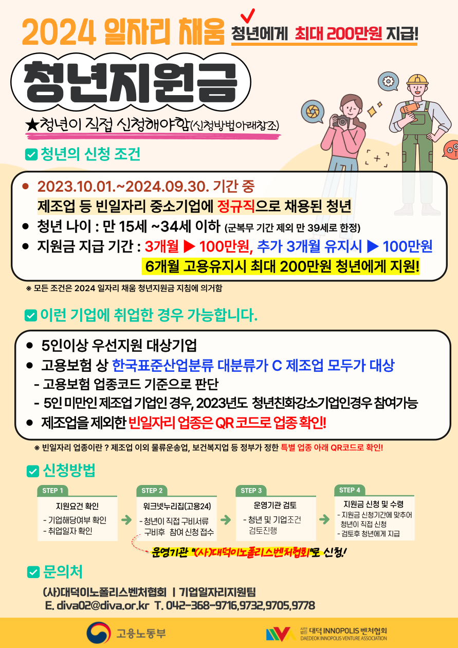 [지원금] 2024년 일자리 채움 청년지원금 참여자 모집 (고용노동부)