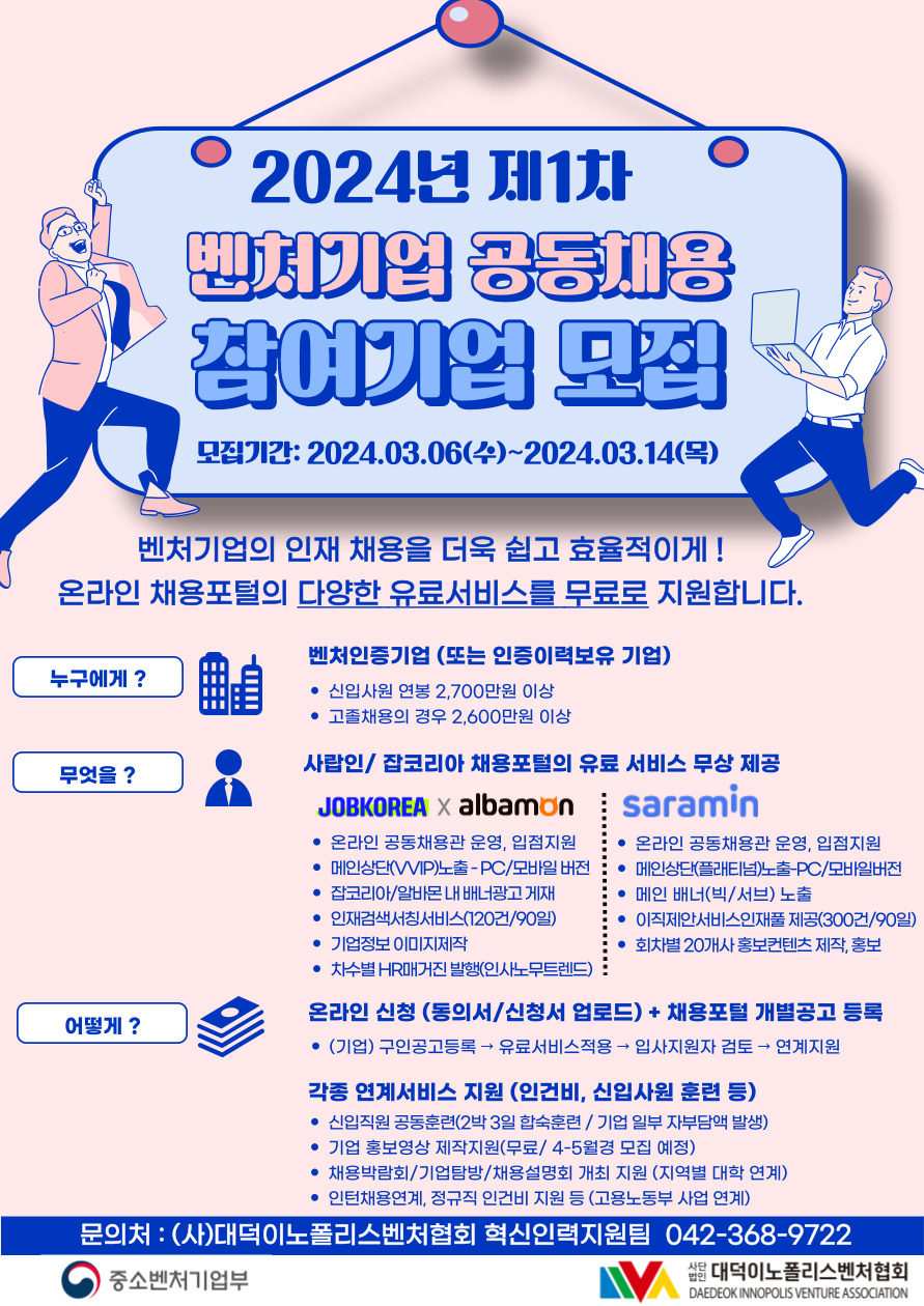 [참여기업모집] 2024년 제1차 벤처기업 공동채용 참여기업 모집