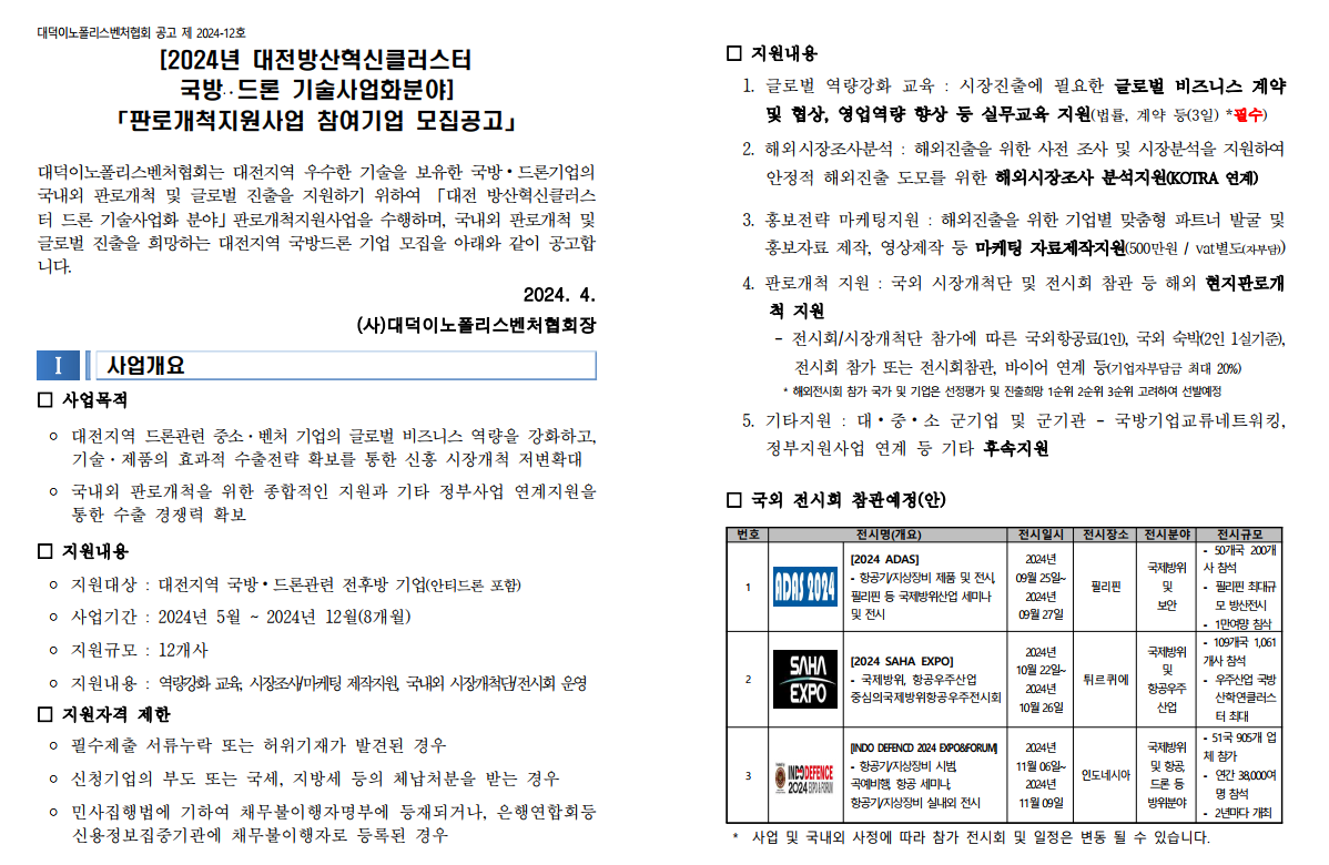 대전방산혁신클러스터 판로개척지원사업 참여기업을 모집합니다.