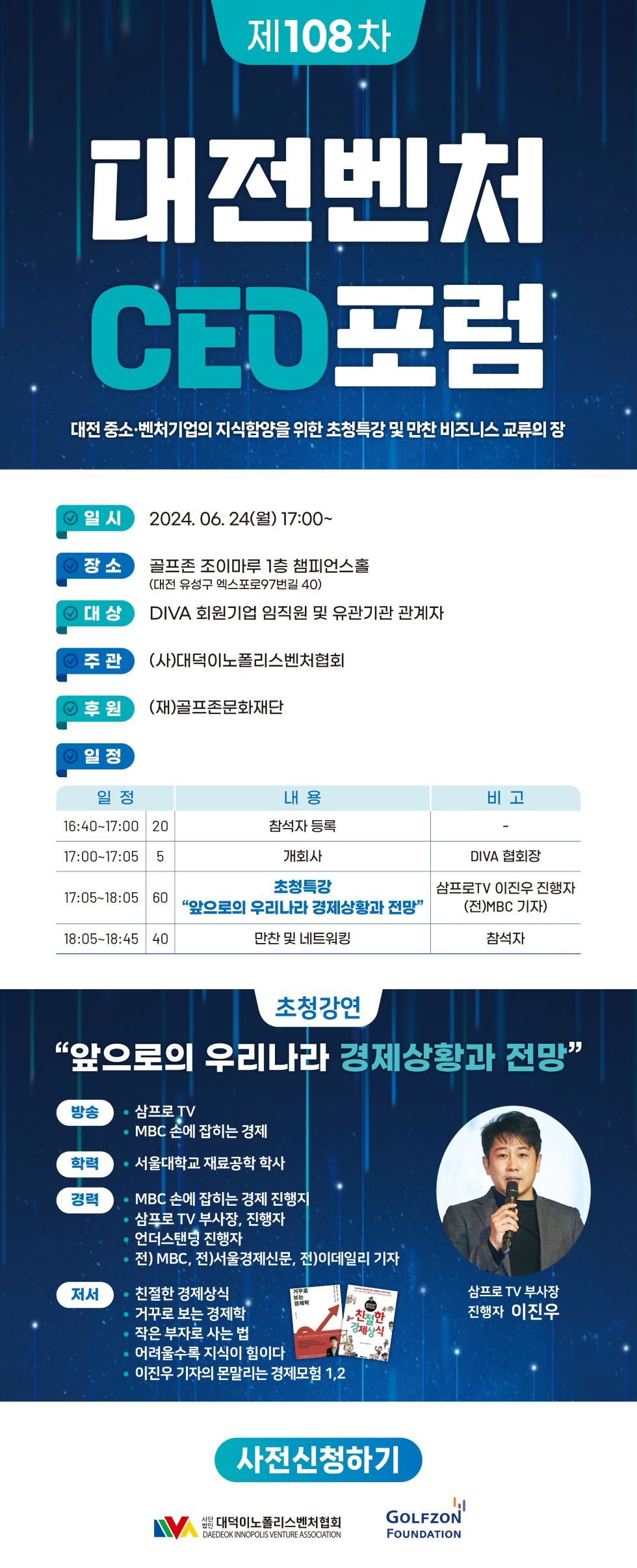[특강/교류] 제108차 대전벤처CEO포럼 참석 안내