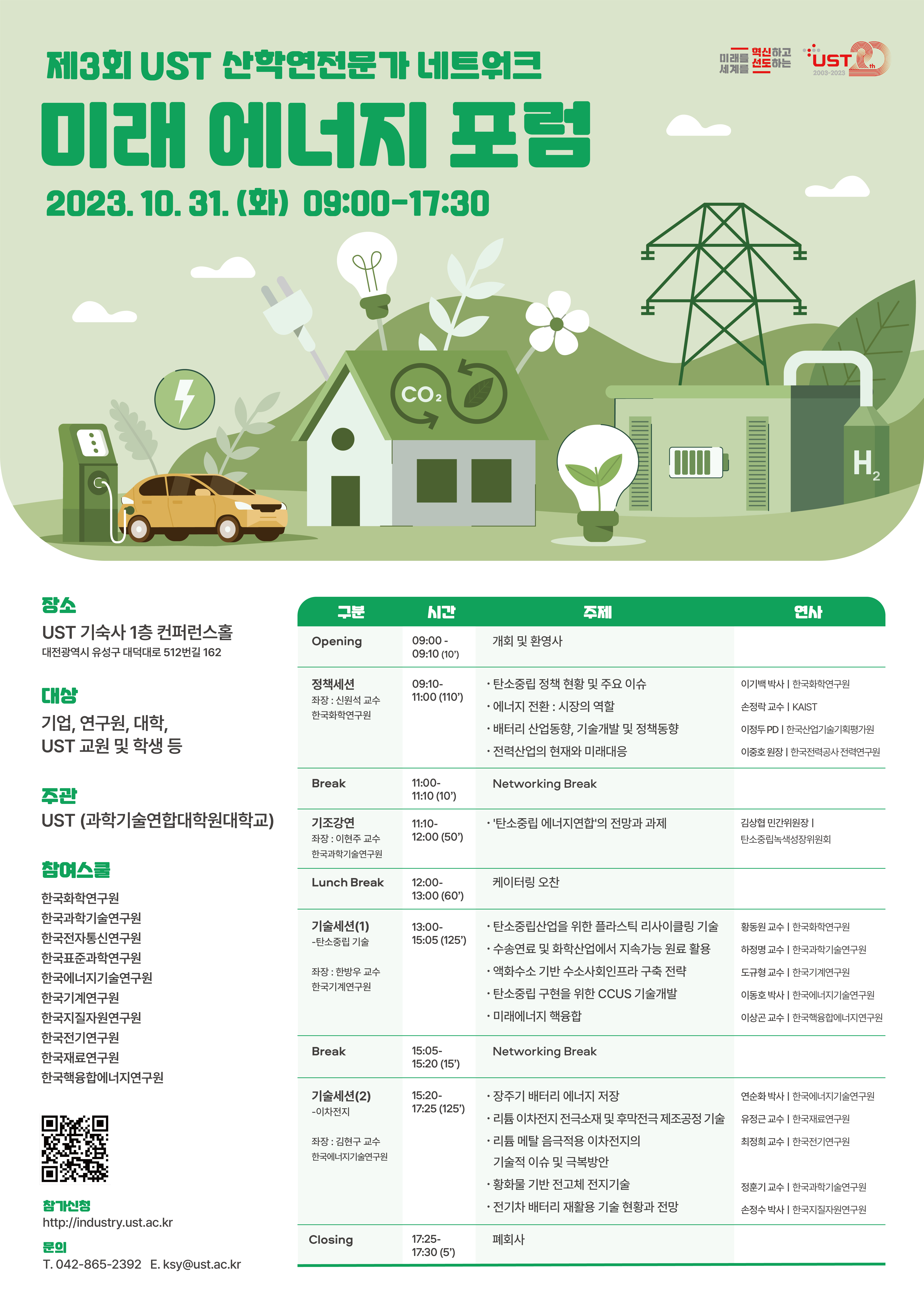[제3회 UST 산학연전문가 네트워크-미래 에너지 포럼]을 개최하오니, 많은 관심과 참여 부탁드립니다.