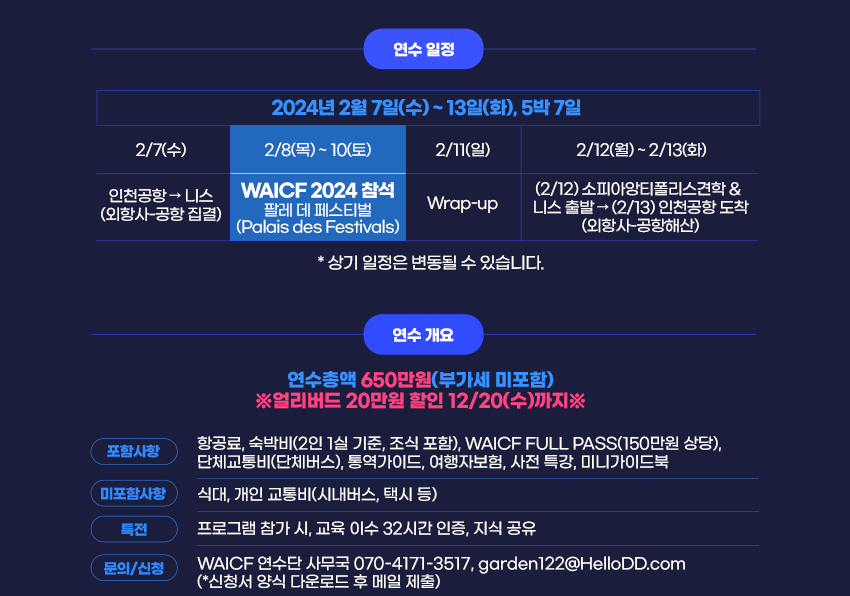 *문의처 : WAICF 연수단 사무국 070-4171-3517, garden122@HelloDD.com