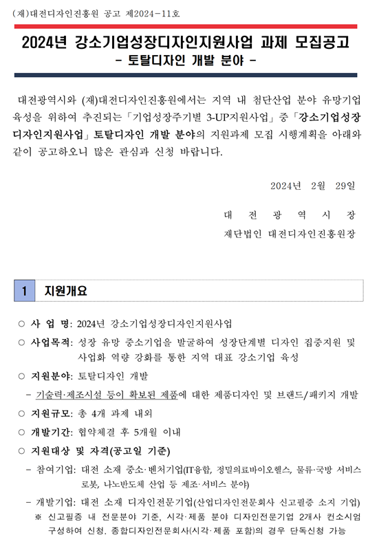 [대전디자인진흥원] 2024년 강소기업성장디자인지원사업 참여기업 모집 안내