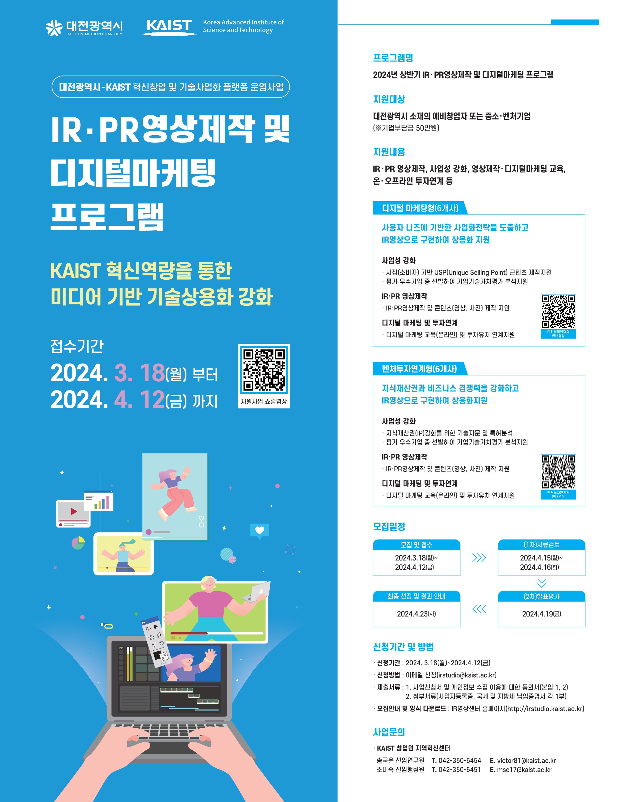 [대전시-카이스트] 2024년 상반기 IR·PR 영상제작 및 디지털 마케팅 프로그램