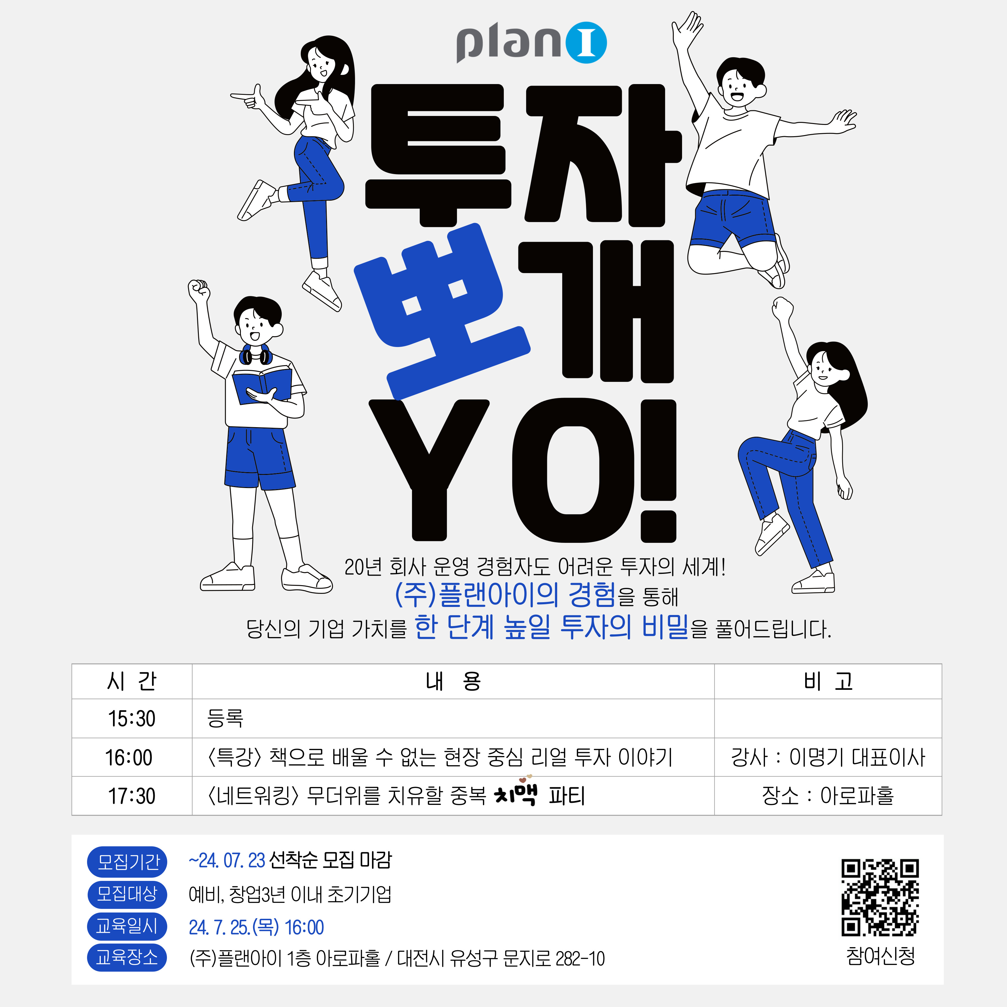 - 교육 일시 및 장소 : 24. 7. 25.(목) 16:00 / (주)플랜아이 1층 아로파홀 / 대전시 유성구 문지로 282-10