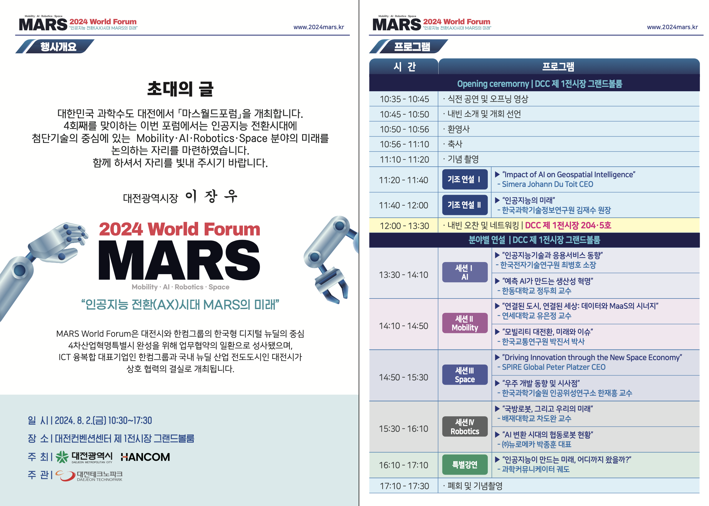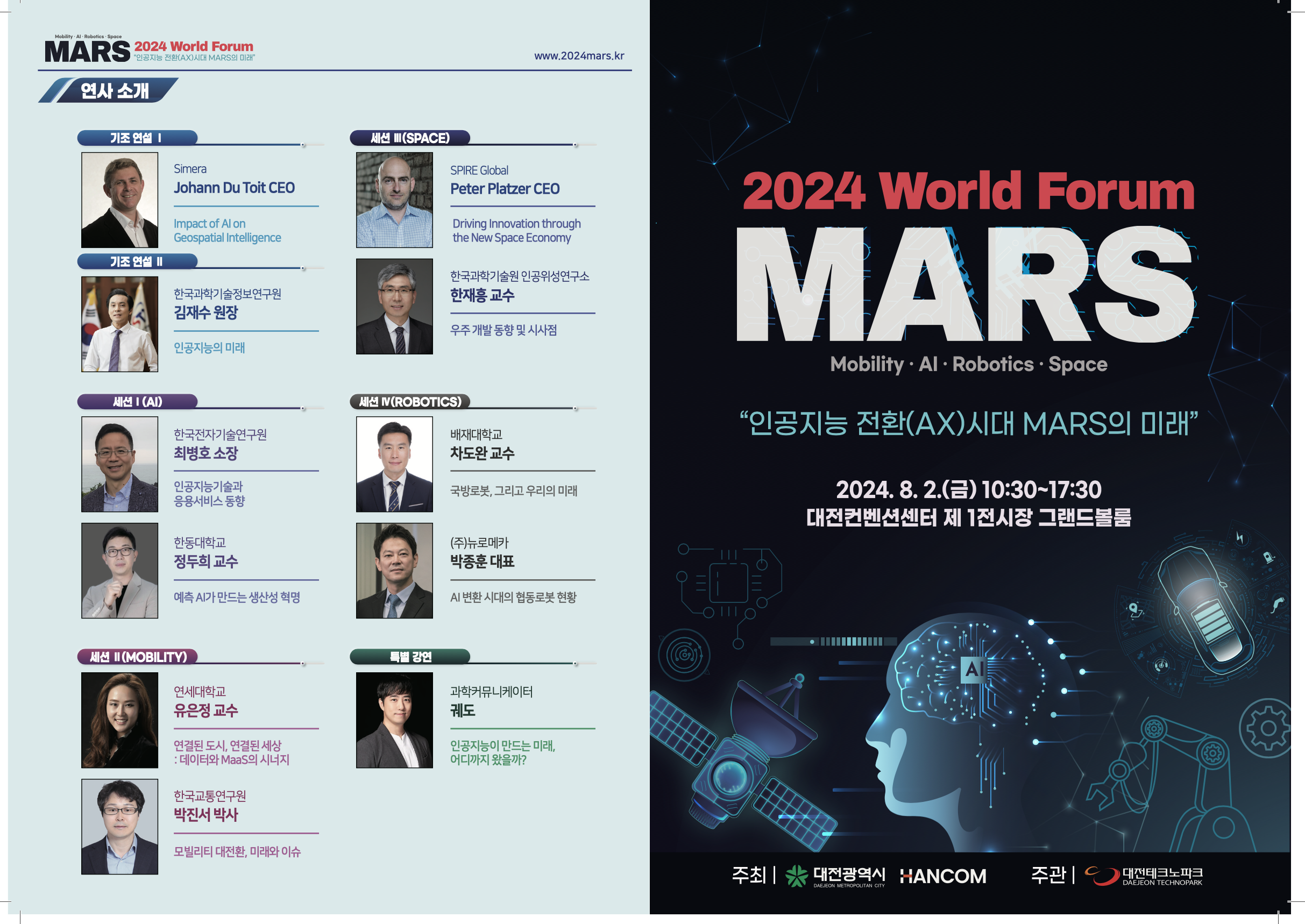 [대전시] 2024 마스월드포럼 "인공지능 전환 시대 MARS의 미래" 참가 안내