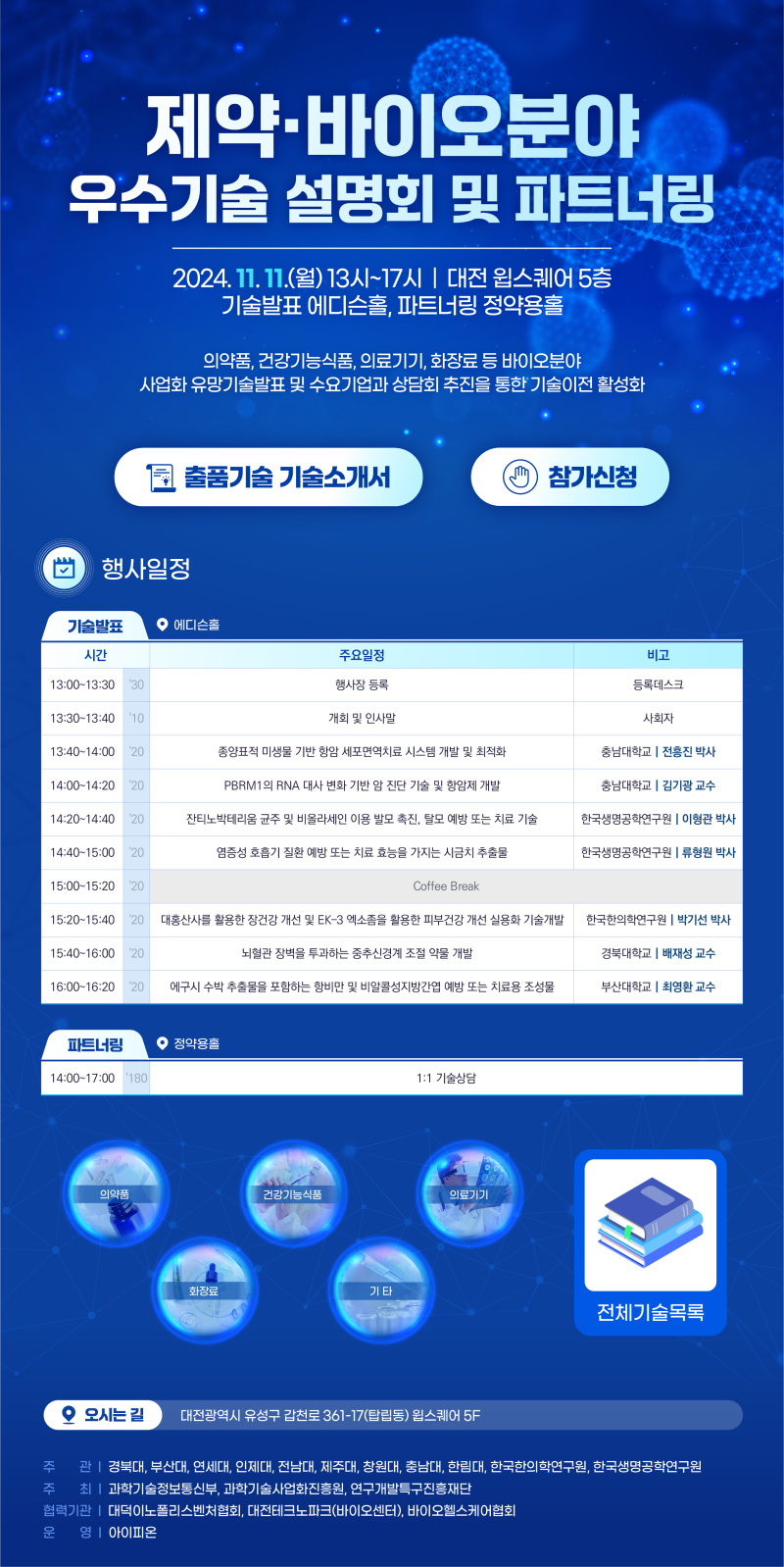 아이피온에서 진행하는 제약·바이오분야 우수기술 설명회 및 파트너링 행사 안내드립니다.