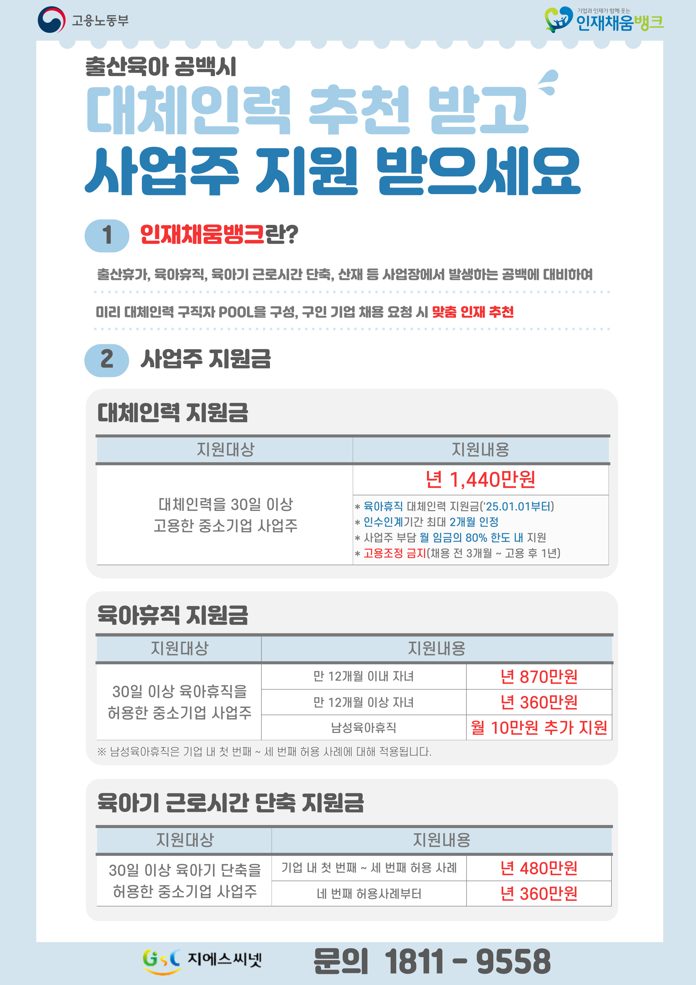 출산휴가, 육아휴직, 육아기 근로시간 단축, 산재 등 사업장에 발생하는 공백에 대비하여