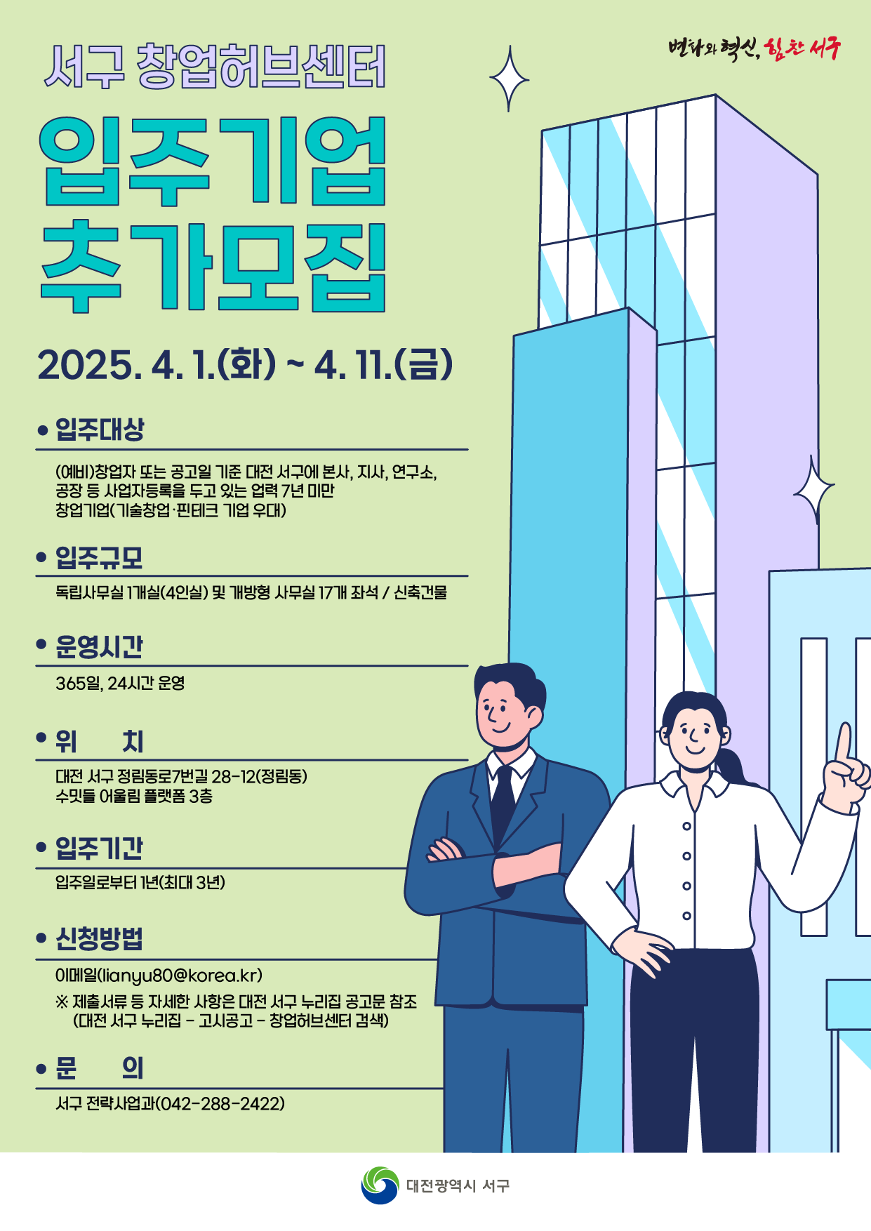 [대전광역시 서구] 창업허브센터 입주기업 모집 안내