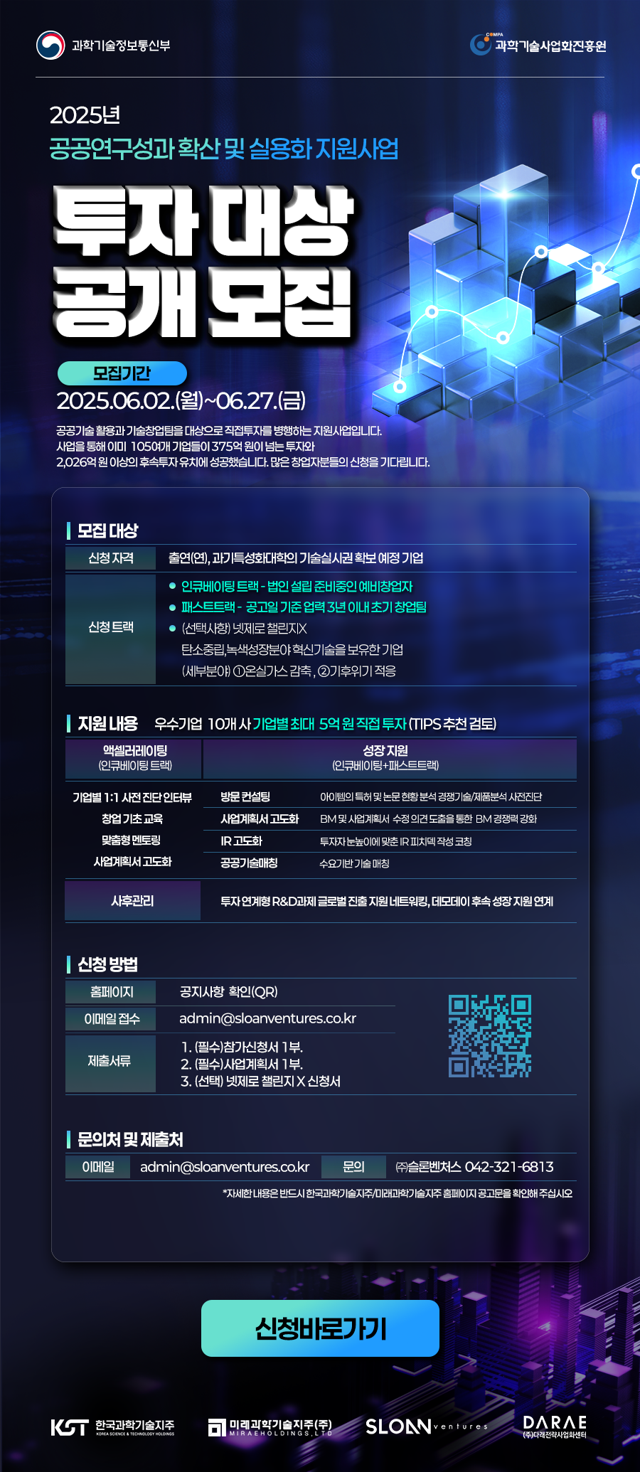 2025년 공공연구성과 확산 및 실용화 지원사헙 투자 대상 공개모집_index.html