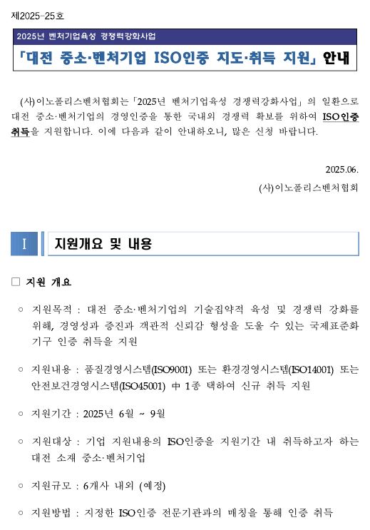 [참여기업모집] 2025년 대전 중소벤처기업 ISO인증 지도 및 취득 지원 안내
