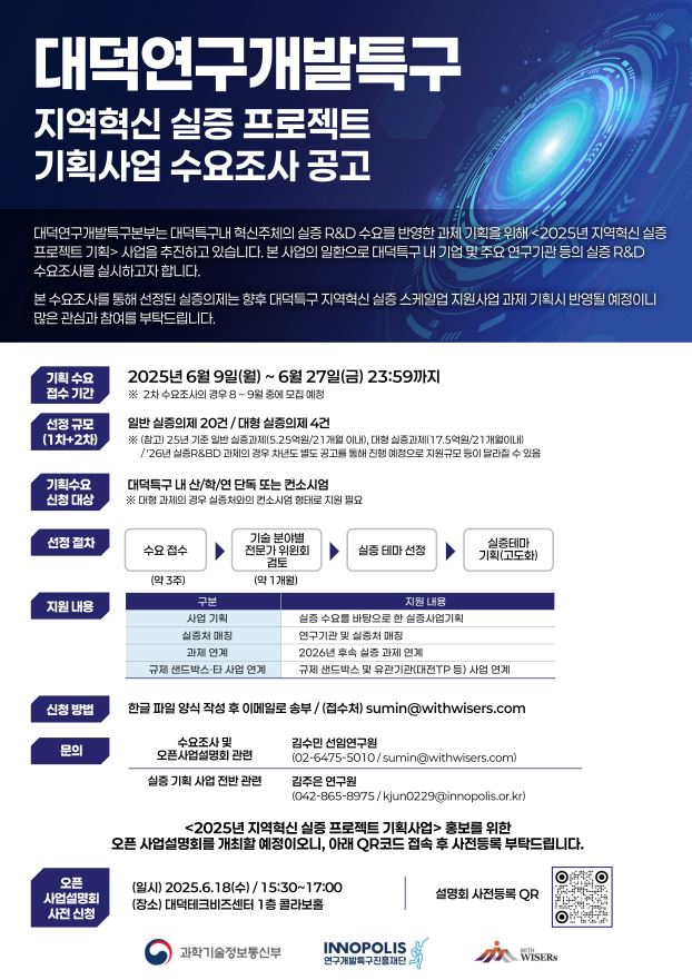 [연구개발특구진흥재단] 2025년 대덕특구 지역혁신 실증기획 수요조사