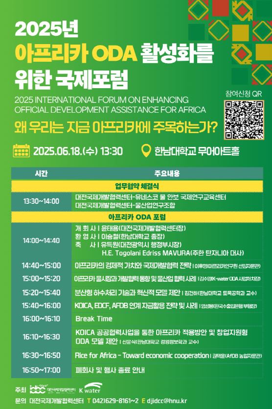 대전국제개발협력센터에서 25. 6. 18(수), 13:30분 한남대학교 무어아트홀에서