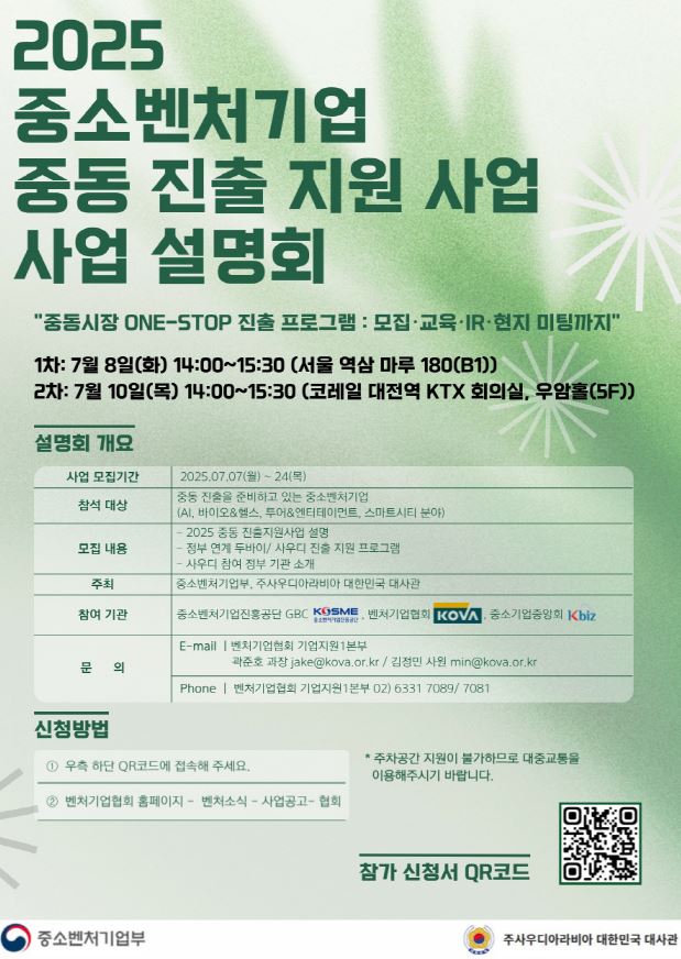 벤처기업협회에서 중소벤처기업부와 사우디 정부와의 협력을 통해 중소벤처기업과 창업기업의 중동 진출을 돕고자