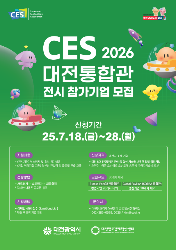 [대전창조경제혁신센터] CES 2026 대전통합관 전시 참가기업 모집(~7.28)