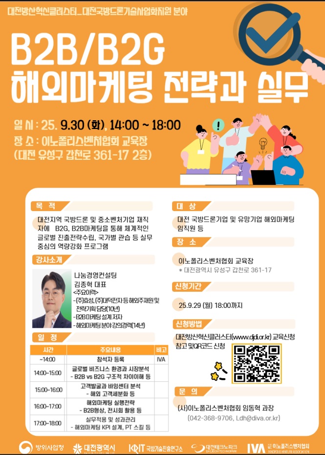 대전 국방드론기업 및 대전유망기업을 위한 글로벌 역량강화교육_B2B, B2G 글로벌 마케팅전략 교육을 운영합니다.