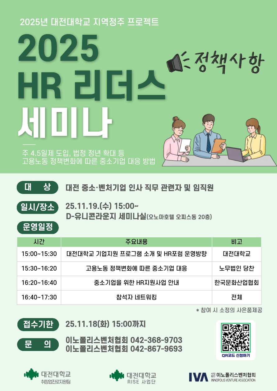 - 대상 : 대전 중소·벤처기업 인사 직무 관련자 및 임직원 등