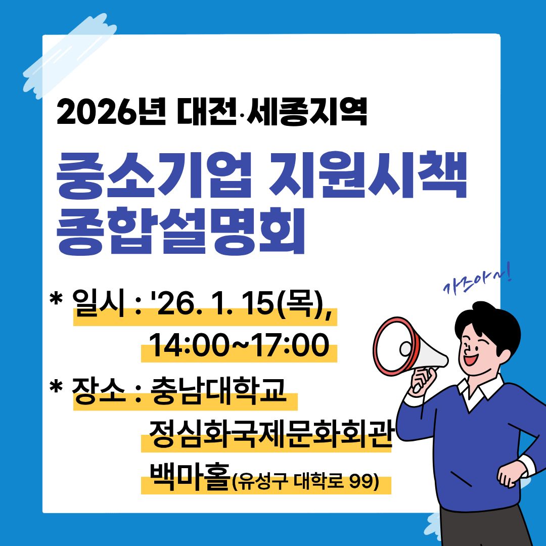 [대전세종지방중소벤처기업청] 2026년 대전·세종지역 중소기업 지원사업 종합설명회 개최 안내