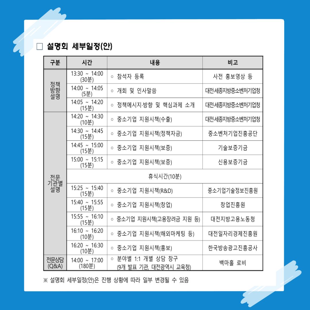 • 주최/주관 : 대전·세종지방중소벤처기업청